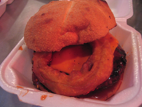 The usual two months the Phil’s is closed for cleaning the the winter holiday was too long. I ordered my usual chick tickler ($6.45 for five chunks of boneless chicken, coleslaw, fries and two onion rings) while my ride for the evening was treated to a medium-well cheeseburger ($5.95). Both were slathered with Phil’s signature BBQ sauce which was still saucy sweet with some secret ingredient the made our mouths tingle. Unfortunately, the cole slaw was still blah and not seasoned to my taste. But the fries and onion rings were more than enough. Especially delicious when dipped in any remaining BBQ sauce.