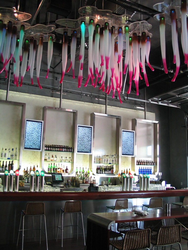 -Most of the furnishings at Bondi, which include the wood floors and copper ore used for the signage, are imported directly from Australia