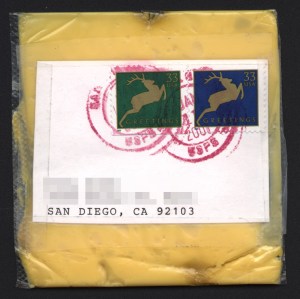 Beef jerky was apparently “damaged” by the post office and sealed in a plastic bag upon delivery. Scanned cheese single below.