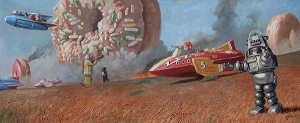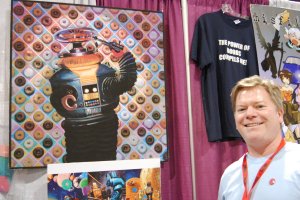 Eric Joyner with the print that stopped me in my tracks. He paints the two things like loves: robots and donuts.