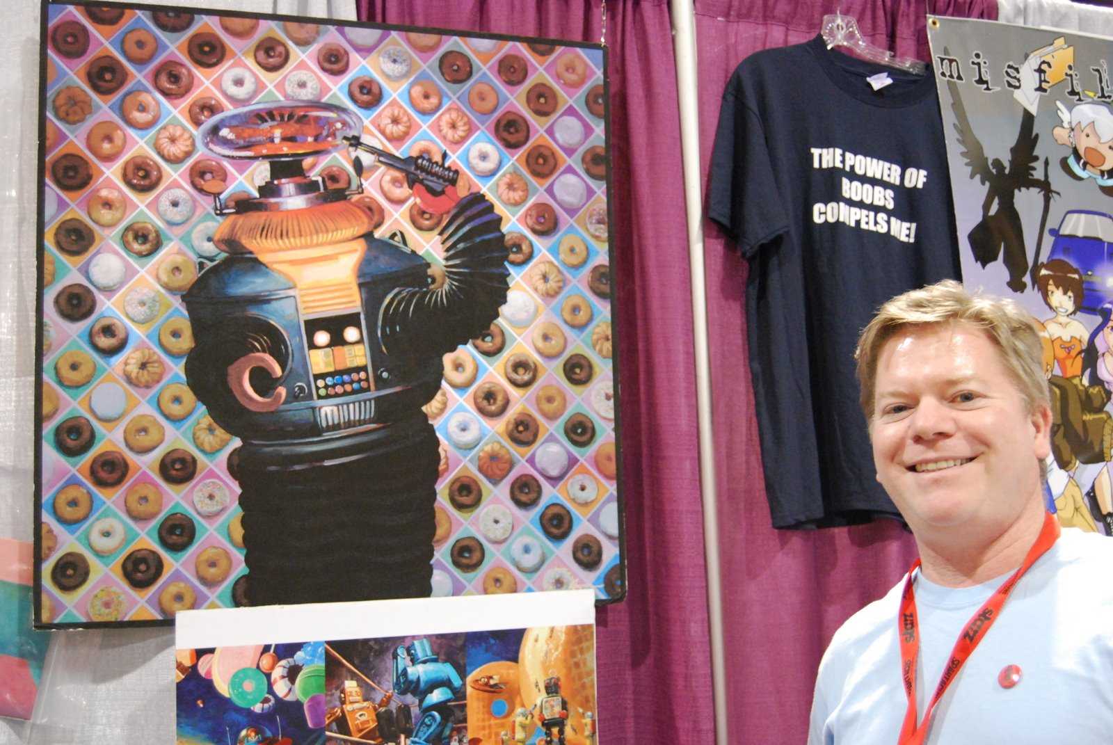I did discover prints by artist Eric Joyner combining robots and donuts. I stopped in my tracks between wandering aisles to a print of robot holding a gun to his head in front of a selection of donuts. It tickled my sick funny bone when thinking about a robot ending his electrical existence because, according to the artist, he could not make his mind up over which donut to eat. Limited edition prints were available at his booth as well as trade paperback with a selection of his work. They can also be ordered online. Unfortunately I need to order it online since I didn’t have time to revisit his booth and get myself a book. It was too hard to chose just one print and we’re running out of wall space in our condo.