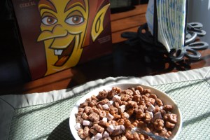 Darlene,The last time I had this cereal I was a kid and if my mother brought a box home it was a treat my brother and I would blow through that box like it was crack. I would bring it to school in a ziplock bag and deal it out like a pimp. I remember a friend I had in the 6th grade he was from India and he had this Turbin? his family moved to the country the month before I gave him count chocula the next week the Turbin was gone and I know it was the cereal and I'm responsible we are old friends now.three years of childhood therapy and I was good. dontcha think that count chocula image on the box is a little disturbing he looks like Vlad the impaler. ok so whats cooking next?