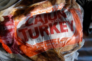 We admit, though, that something about the season does make us hungry for turkey. But not the standard Butterball — this year we wanted to try one deep-fried. So I naturally started up the firepit, whipped out the 55-gallon drum, half-filled it with Crisco and dropped in the bird. No, I joke. We got our bird from Popeyes. Yes, the Cajun-themed fast-food establishment. They were selling pre-fried turkeys for thirty bucks and that sounded good to us. Thing is, we went down there a couple Saturdays before Thanksgiving with the full intention to have our Thanksgiving the day after, but the gal at Popeye’s said their birds aren’t ready for another couple days. OH NOES! Thanksgiving is ruined! Oh, wait. Let’s just have it the following weekend.