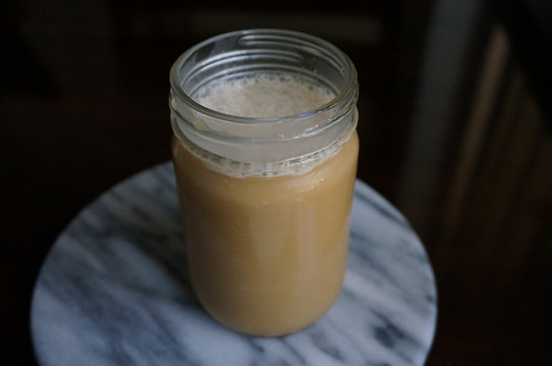 Depending on taste, you can use whatever beans you want and how long to brew. I have some really nice (read: expensive) beans at home but didn’t want to waste them. Instead, I used basic Trader Joe’s beans. Don’t buy the pre-ground stuff; you’ll want to freshly coarse grind yourself. The beans are then soaked at room temperature for 18 hours. Remove the grounds and you’re good to go.