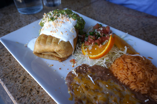 Lobster chimichanga plus an appetizer plate meant to feed five people. Conquered it.