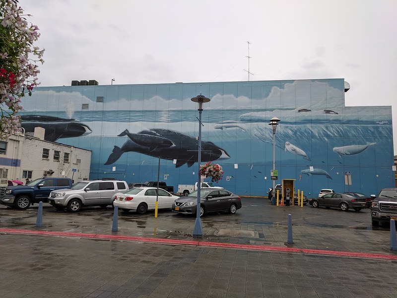 Other downtown sights included taking a photo of the Balto, a statue of a famous Siberian husky, located near the official start of the iditarod and shopping for souvenirs at one of many gift shops. We discovered that Downtown Anchorage is also home to a painting by Robert Wyland (pictured at the top).