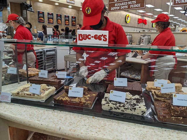 If you’re not familiar with Buc-ee’s, there are countless articles, video and posts about this Texas-born convenience store’s name branded candies, sodas, selection of BBQ sandwiches, gas pumps, etc. But all that doesn’t prepare you for the immensity of Buc-ee’s. It is H-U-G-E.